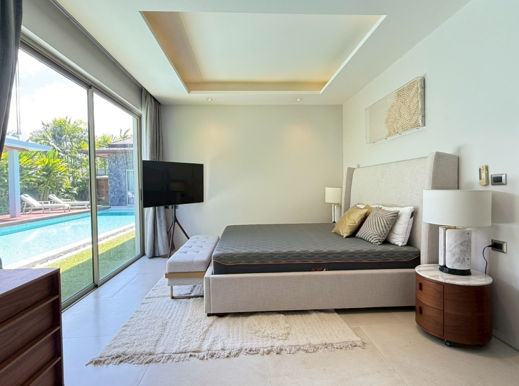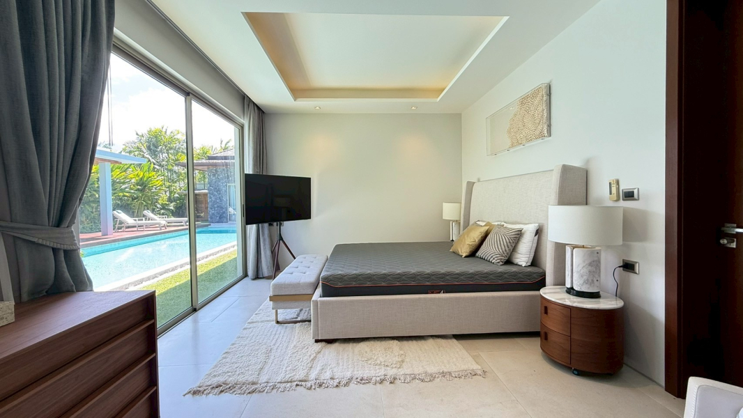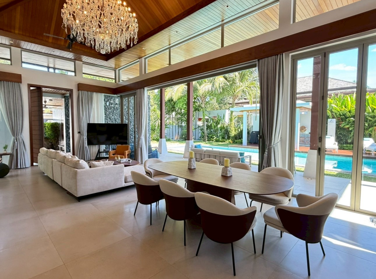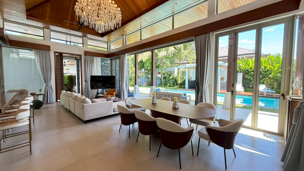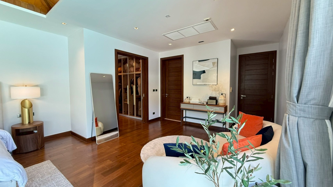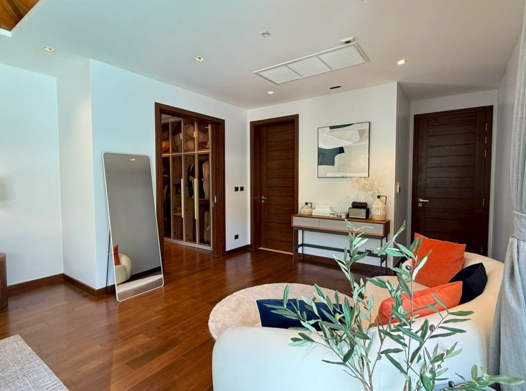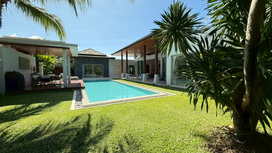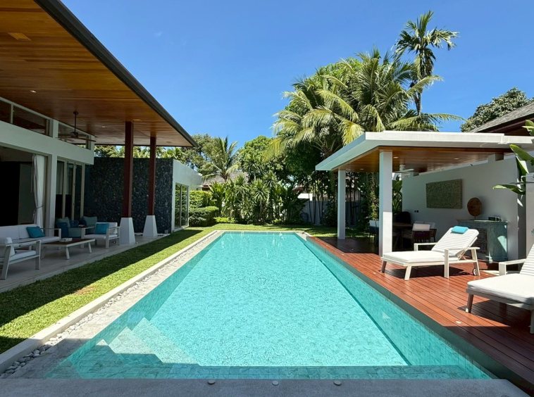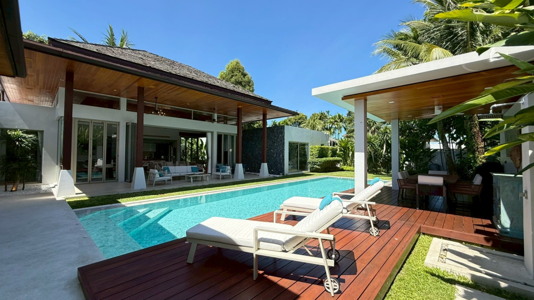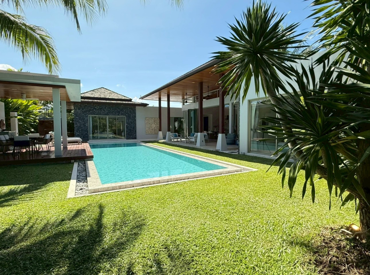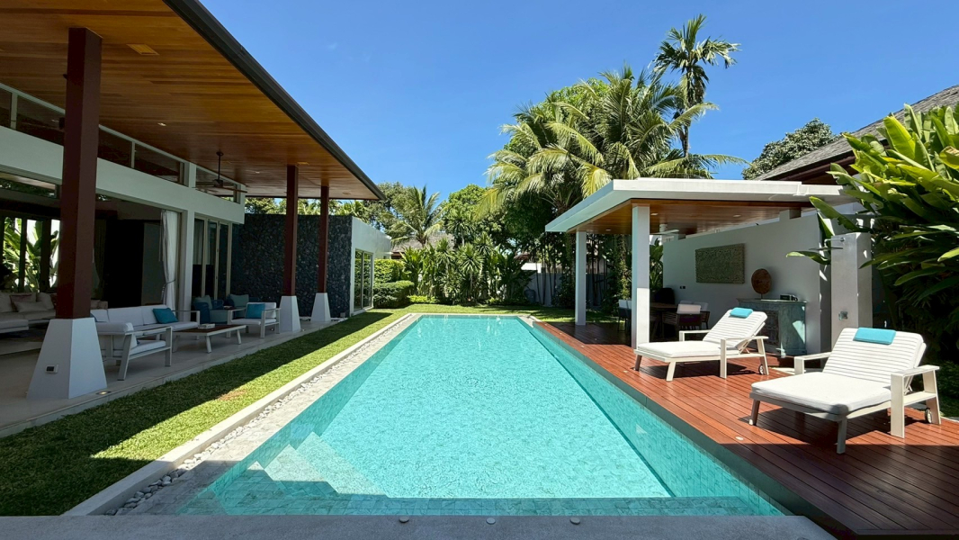 This rare villa for sale in the prestigious Botanica development in Choeng Thale, Phuket blends luxury, comfort, and style with meticulous craftsmanship. Built with solid teak wood and top-tier imported materials, this 4-bedroom, 4-bathroom home is turnkey-ready and ideal for discerning buyers seeking a high-end tropical residence or investment property.
