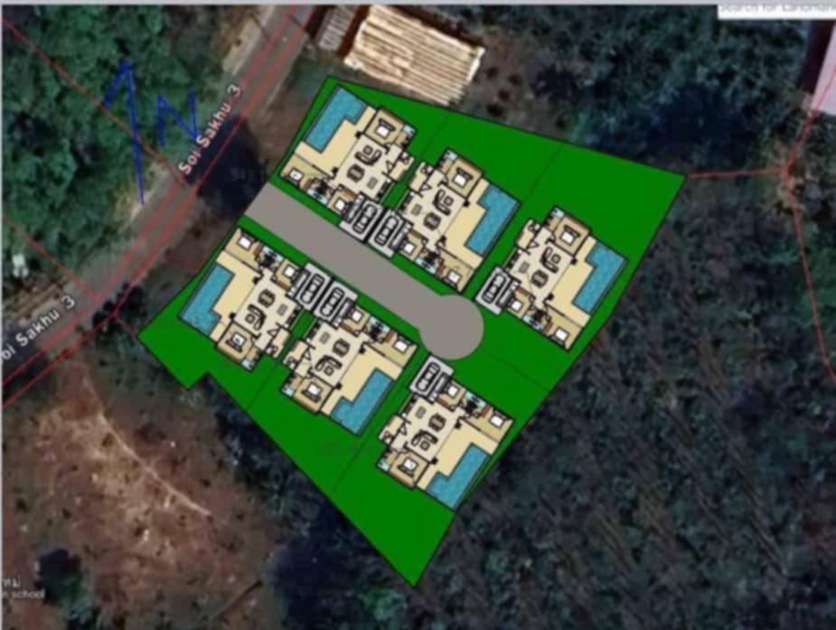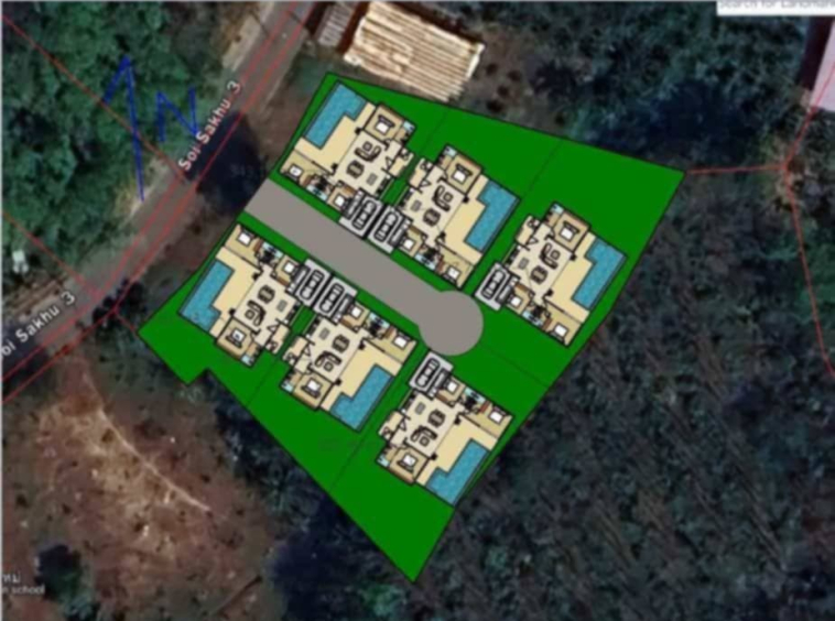 Spanning 1 Rai 343.7 sq.wah (2,974.8 sqm), this green zone land is perfect for building 6–8 luxury pool villas, a boutique resort, or a private residential estate. The plot features a unique trapezoidal shape with 49 meters of road frontage, 55 meters in depth, and a 75-meter rear length—ideal for smart architectural layouts.