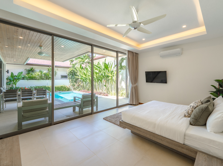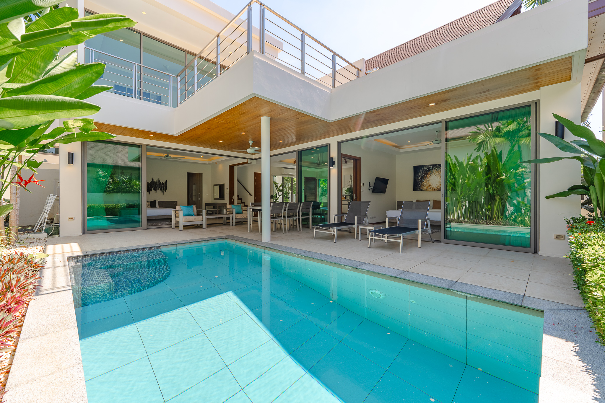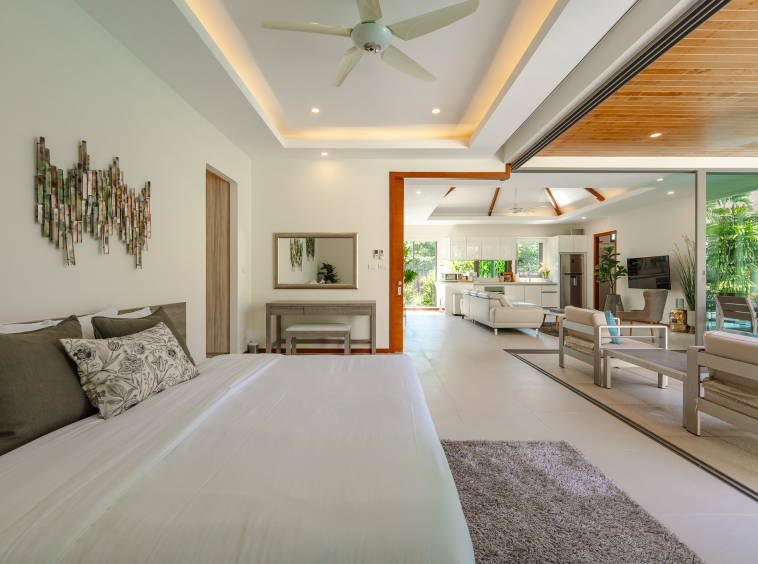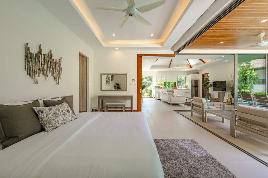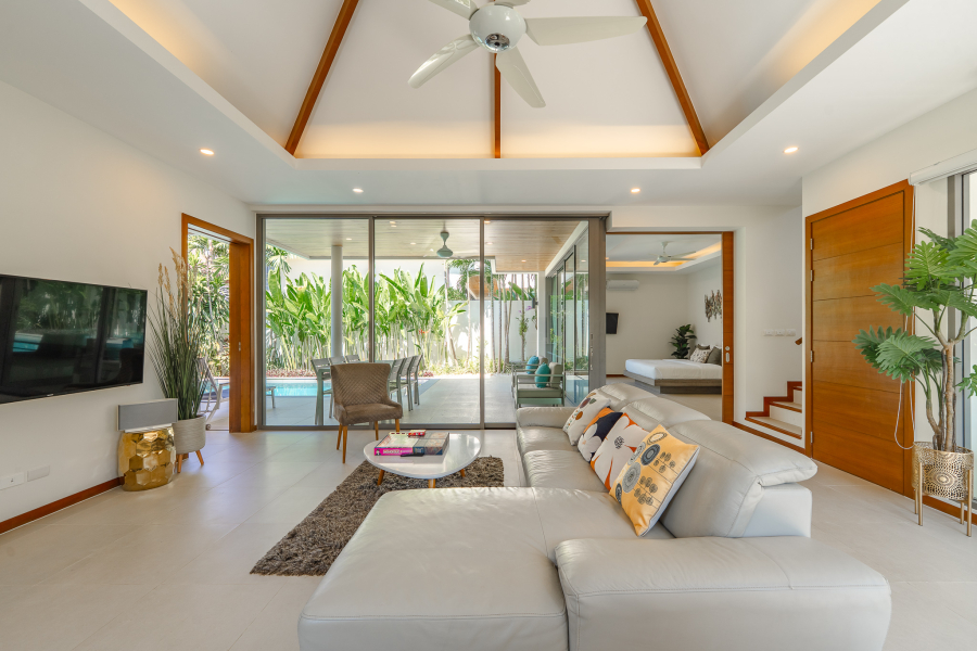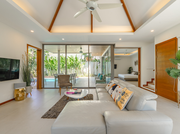 The villa features 4 bedrooms and 4 bathrooms across 241.15 sq.m of thoughtfully designed living space. Large full-length windows draw in natural light and fresh air, enhancing the sense of openness throughout the home. The interiors are practical yet elegant, with generous living and dining areas that connect smoothly to the outdoor terrace and pool area. This is a property suited for comfortable family living, a holiday home, or a smart investment in the Phuket property market.