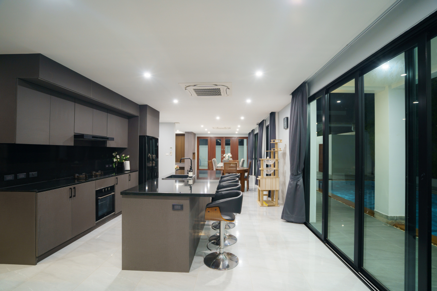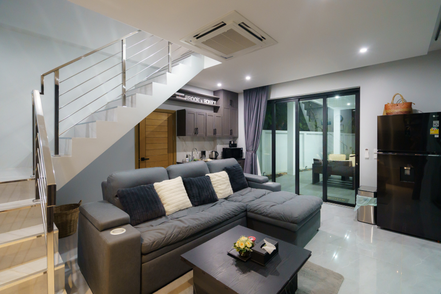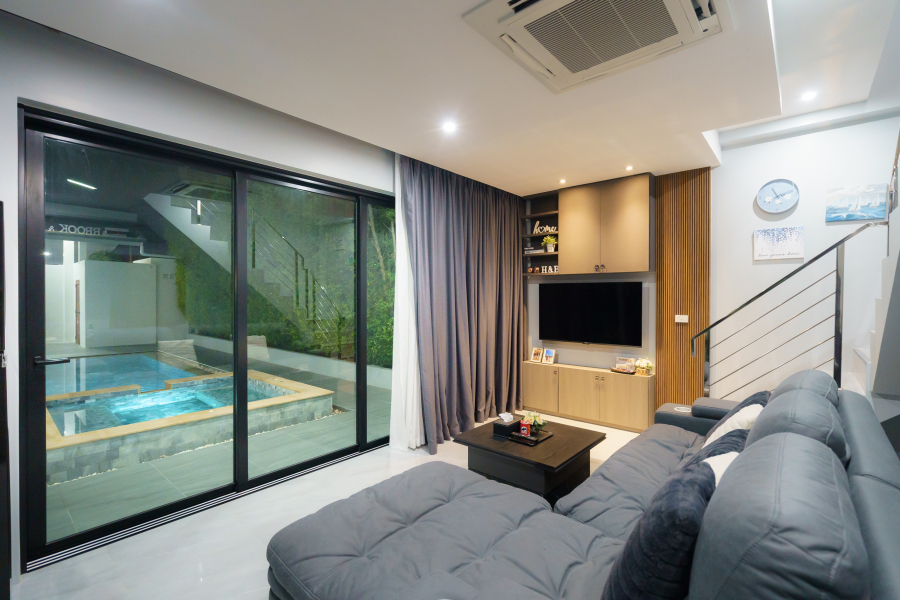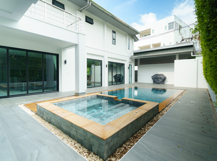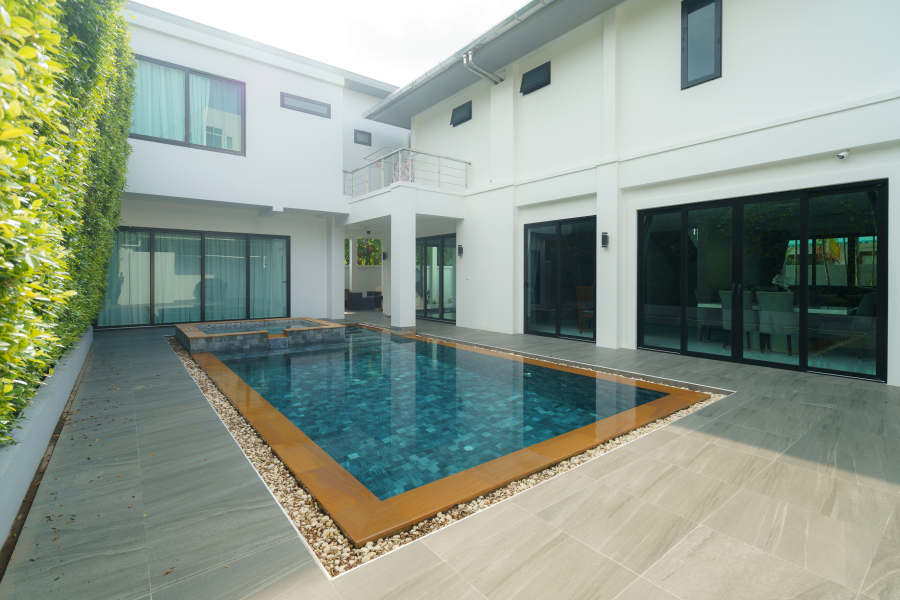 The villa spans a spacious 1,580 sqm of usable area on a 497 sqm freehold land plot, designed for comfort and elegance. Every corner combines functionality with style, featuring two bright living spaces, two fully equipped kitchens, and multiple storage and laundry areas. Step outside to your saltwater pool with a built-in hot spa powered by a high-quality Australian system, ideal for relaxing under the Phuket sun.