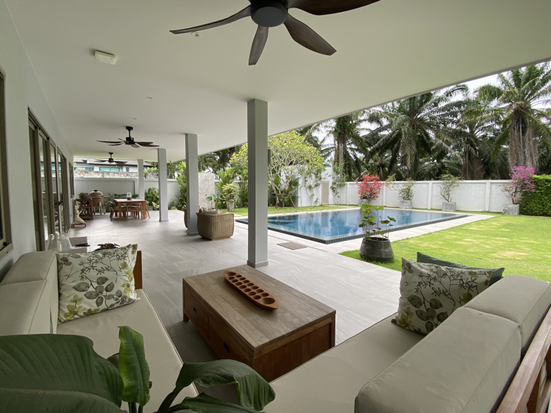 Nestled in the serene locale of Pasak, Cherng Talay, just minutes away from the vibrant Boat Avenue and Porto de Phuket, this luxurious villa offers an impeccable blend of comfort and opulence. The villa, set on a sprawling 1540 sqm land plot, spans a generous 620 sqm of beautifully crafted living space.