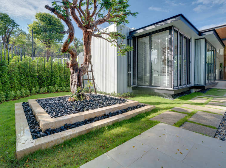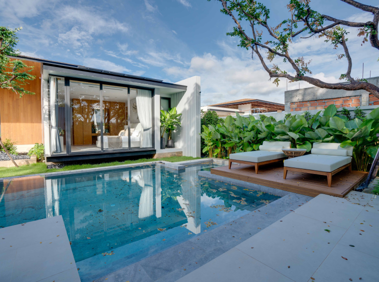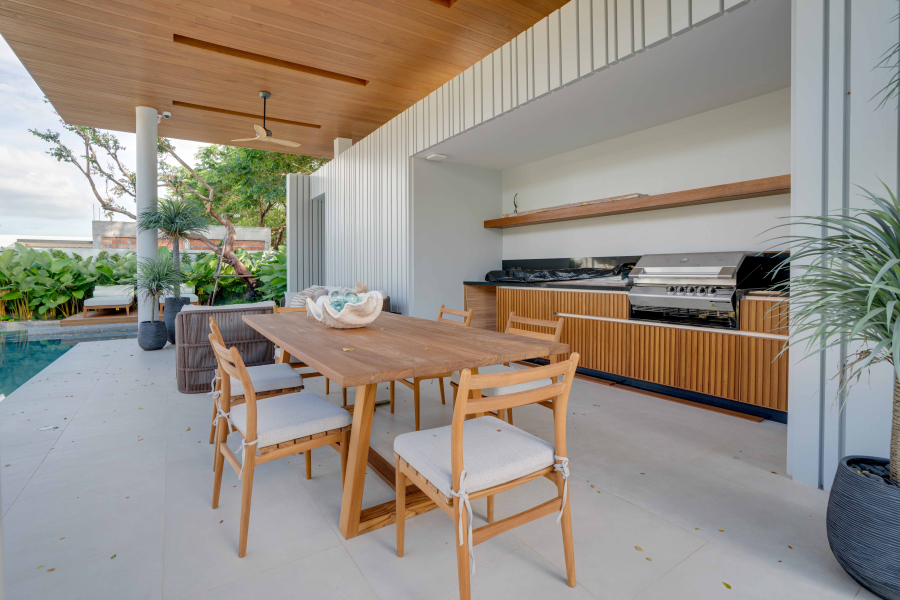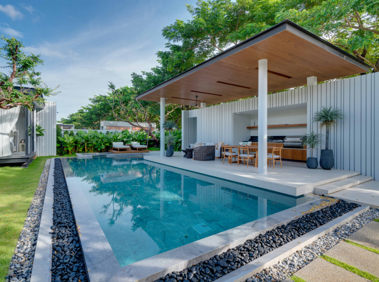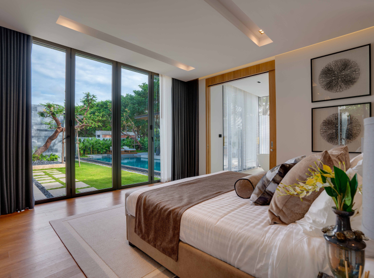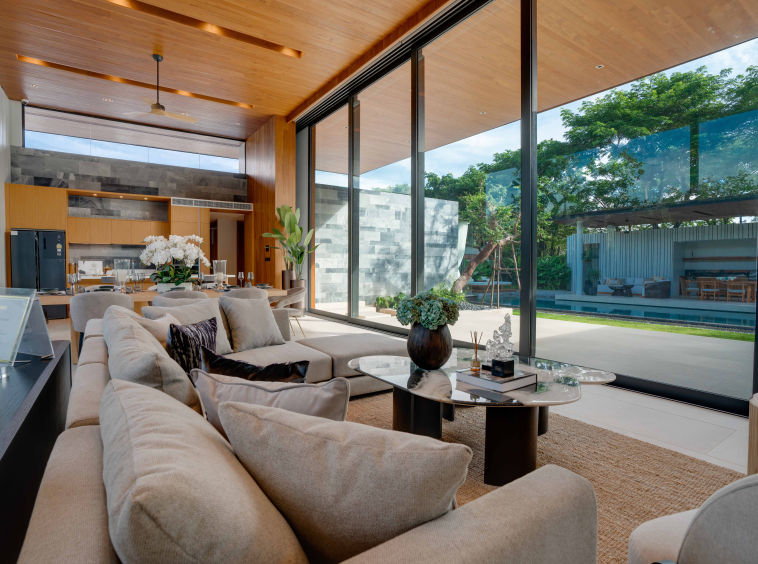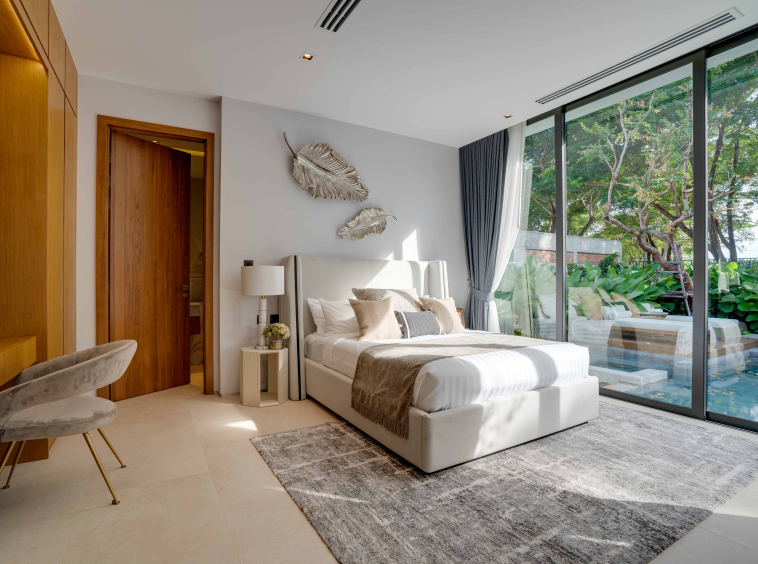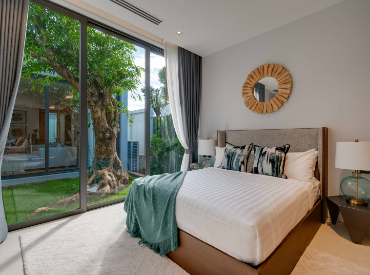 The villa is surrounded by lush tropical nature, offering both tranquility and security. Set in a peaceful corner of Choeng Thale, it remains just minutes from lifestyle hotspots like Boat Avenue, Blue Tree, and Bang Tao Beach.