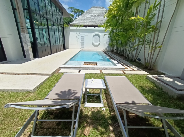 Welcome to an exquisite villa that redefines luxury, nestled in the serene enclave of Cherng Talay, Phuket. This boutique collection of pool villas offers the perfect blend of modern architecture with a tropical touch, ideal for families and couples seeking privacy and contemporary comfort.