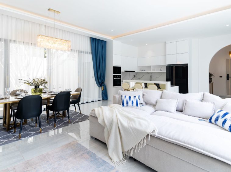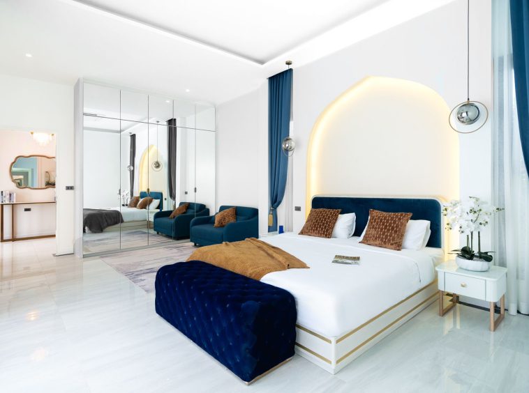 The expansive rooftop terrace, accessible via a stylish spiral staircase, offers breathtaking views and a perfect spot for sunset relaxation. Designed with authentic Middle Eastern influences, this villa exudes sophistication while ensuring a comfortable and contemporary lifestyle.