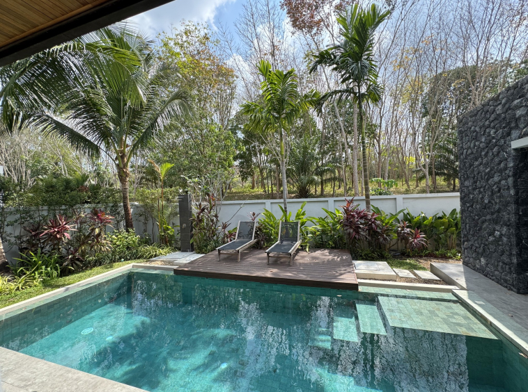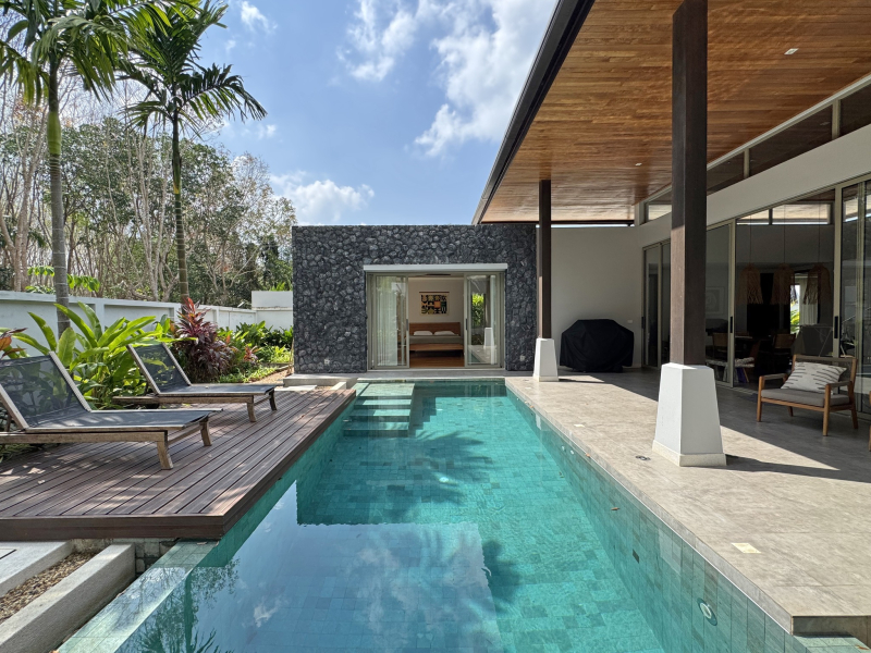 Discover refined tropical living in this sophisticated 3-bedroom pool villa for rent, located in the prestigious Botanica Villas project near Layan, Phuket. Nestled in a peaceful setting with lush forest views, this luxurious residence is just a 5-minute drive to both Bang Tao and Layan beaches.