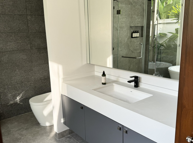 Designed in a modern Balinese style, the villa combines elegance, comfort, and practicality. The open-plan living space flows seamlessly into the outdoor area, where you’ll find a private pool surrounded by tropical greenery—perfect for quiet relaxation or entertaining guests.