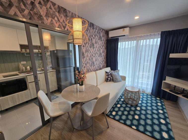 This stylish 1-bedroom condo at Phyll Phuket is perfect for individuals or couples looking for a modern, comfortable living space in a prime location. Situated on the 5th floor, this 34 sqm unit comes fully furnished and equipped with all essential electrical appliances, making it a hassle-free choice for anyone ready to move in.