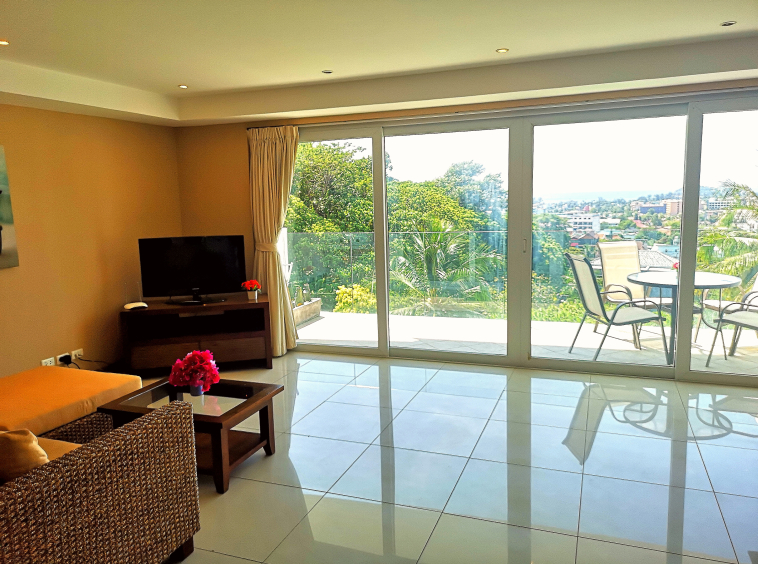 Welcome to Kata Ocean View, a highly sought-after development perched on Kata Hill in Phuket. Just 1.5 km from the white sands of Kata Beach and close to iconic landmarks like the Big Buddha (2.5 km), this modern 2-bedroom condo for rent offers the perfect balance of comfort, convenience, and panoramic sea views.