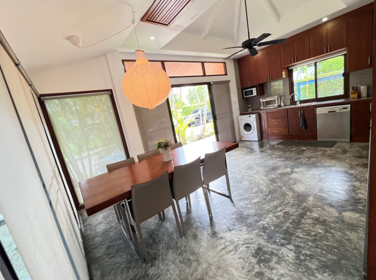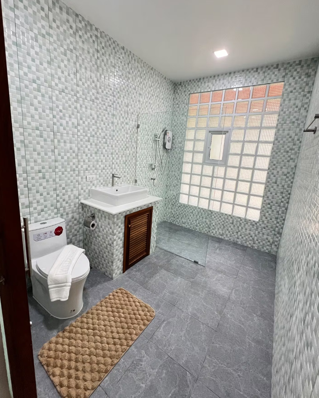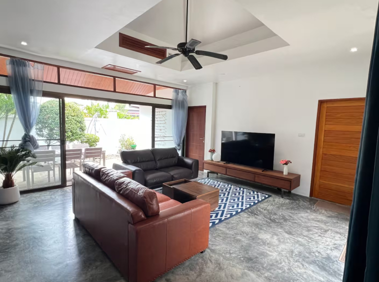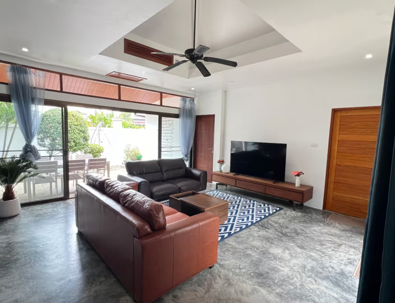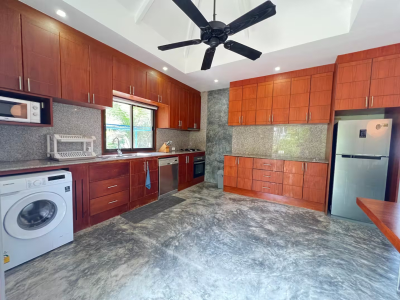 Set on a 400 sqm land plot with 180 sqm of usable space, the home is designed for easy tropical living. The spacious living room opens to a bright, welcoming atmosphere, while the fully equipped kitchen makes daily cooking effortless. Each of the three bedrooms comes with its own full bathroom, offering privacy and comfort for families or long-term residents.