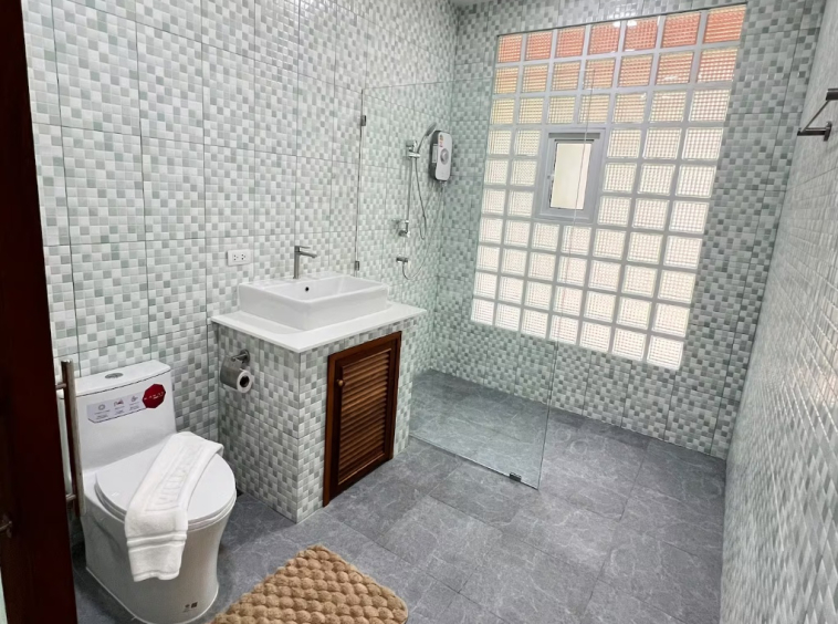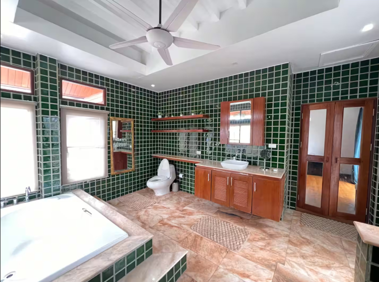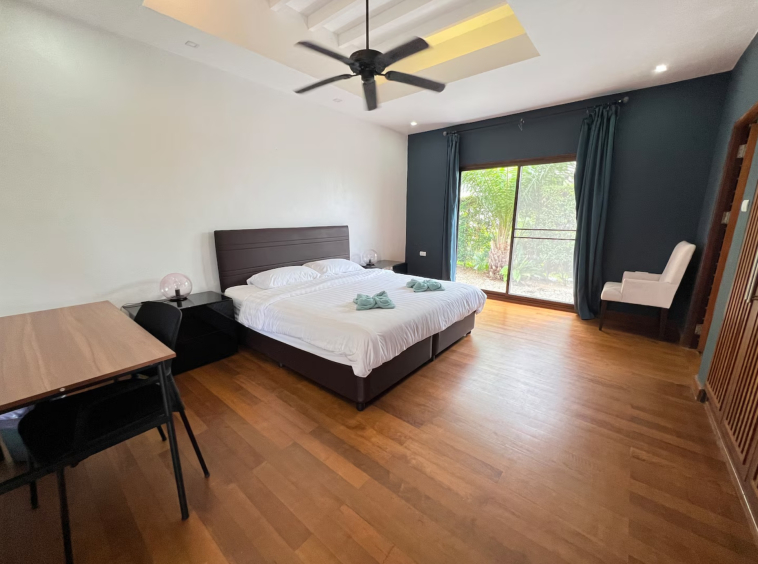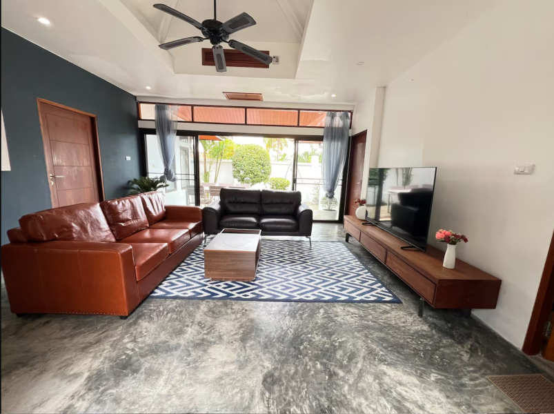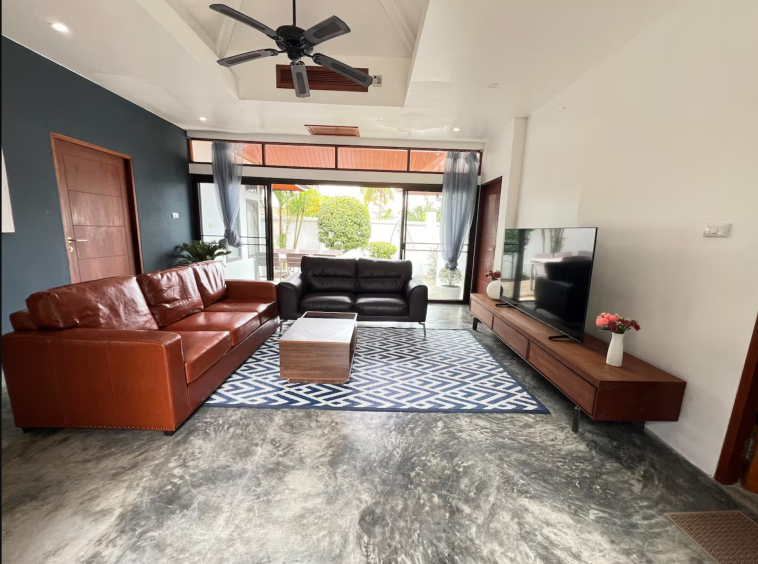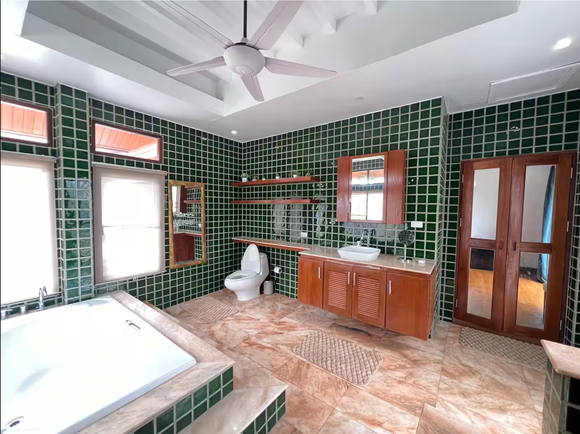 Set on a 400 sqm land plot with 180 sqm of usable space, the home is designed for easy tropical living. The spacious living room opens to a bright, welcoming atmosphere, while the fully equipped kitchen makes daily cooking effortless. Each of the three bedrooms comes with its own full bathroom, offering privacy and comfort for families or long-term residents.