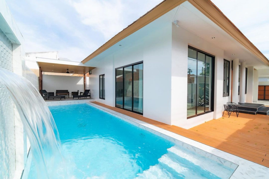 Discover an exclusive lifestyle with this brand new villa for rent located in the prestigious Pa Khlok area. Situated close to prominent amenities, this exquisite home offers luxurious living with convenience and comfort. The villa boasts three spacious bedrooms and three bathrooms, perfect for families or those looking to share an affluent lifestyle.