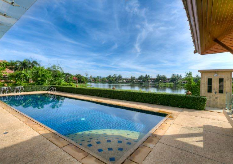 Private swimming pool with lake view