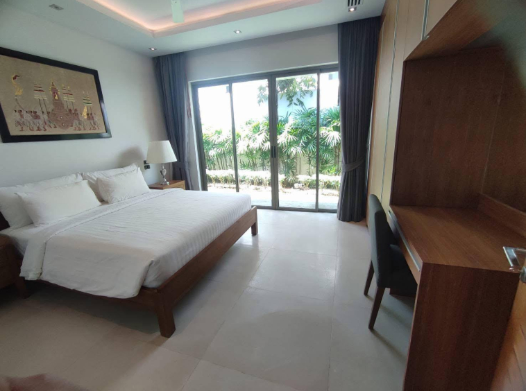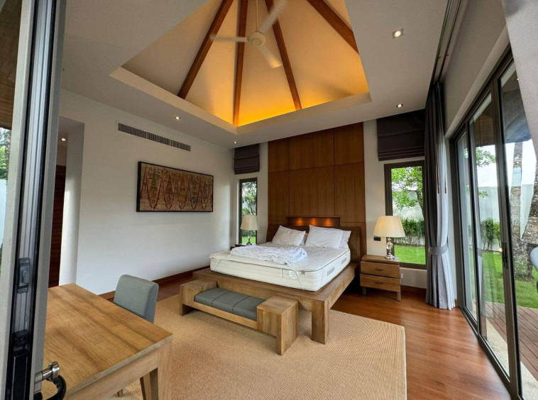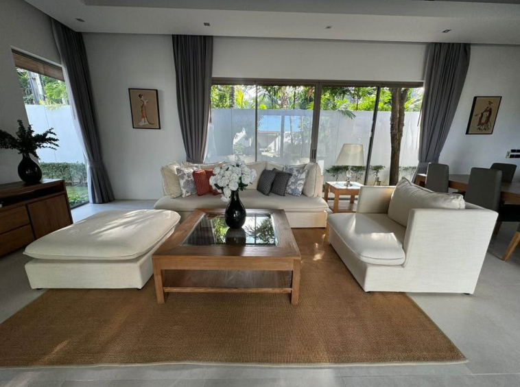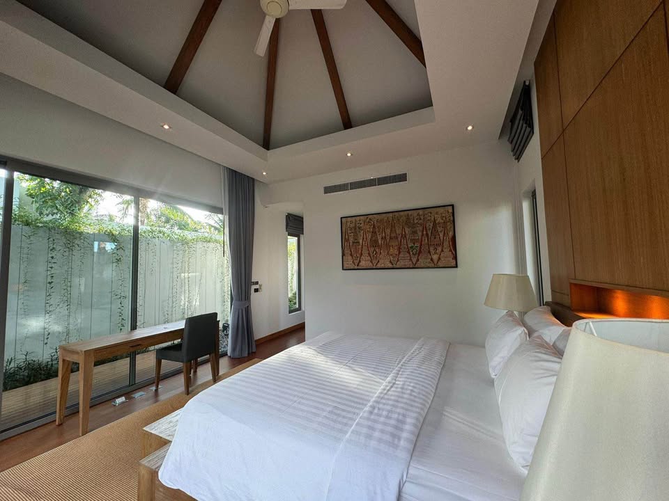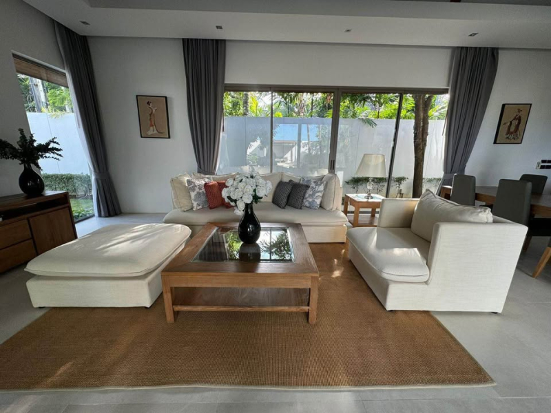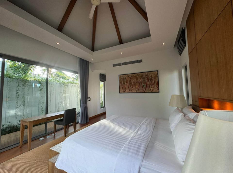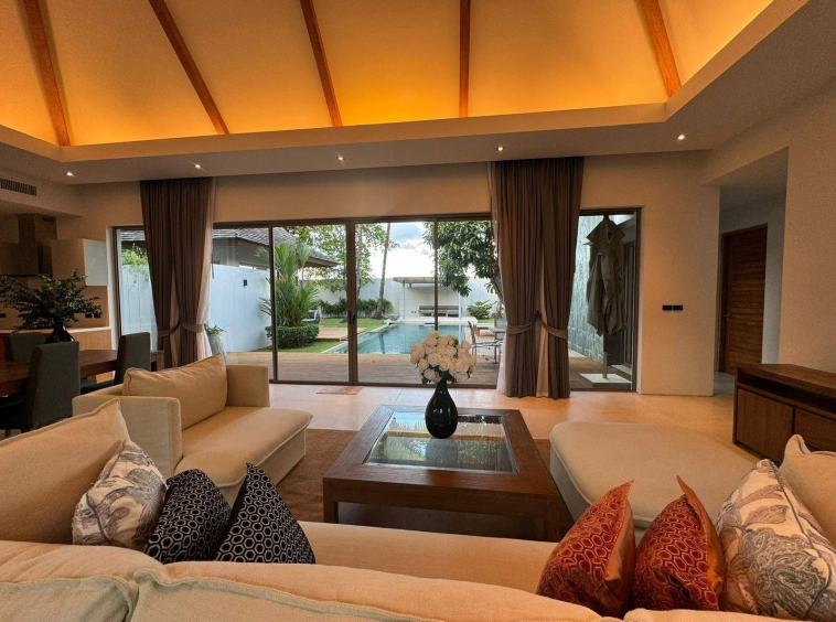 This 4-bedroom, 4-bathroom pool villa is crafted for those who value space, serenity, and high-quality living. The interiors feel warm and sophisticated, blending modern design with natural tones. Expansive living areas open toward a serene private pool framed by lush greenery, creating a smooth indoor–outdoor flow ideal for families or anyone seeking a long-term tropical retreat.