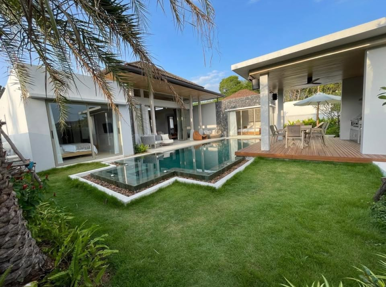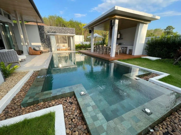 Private pool villa with 3 bedrooms for rent. This villa is located in Choeng Thale and less than 10 minutes from the beach.
