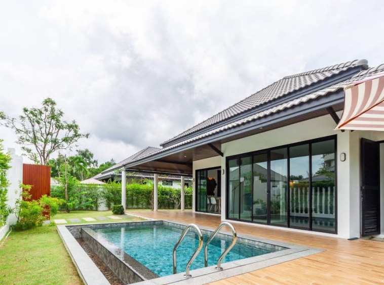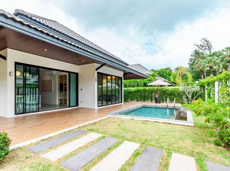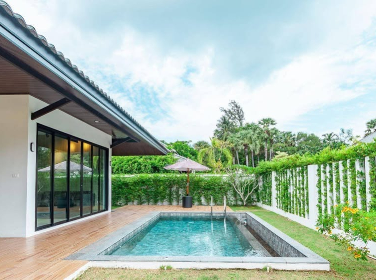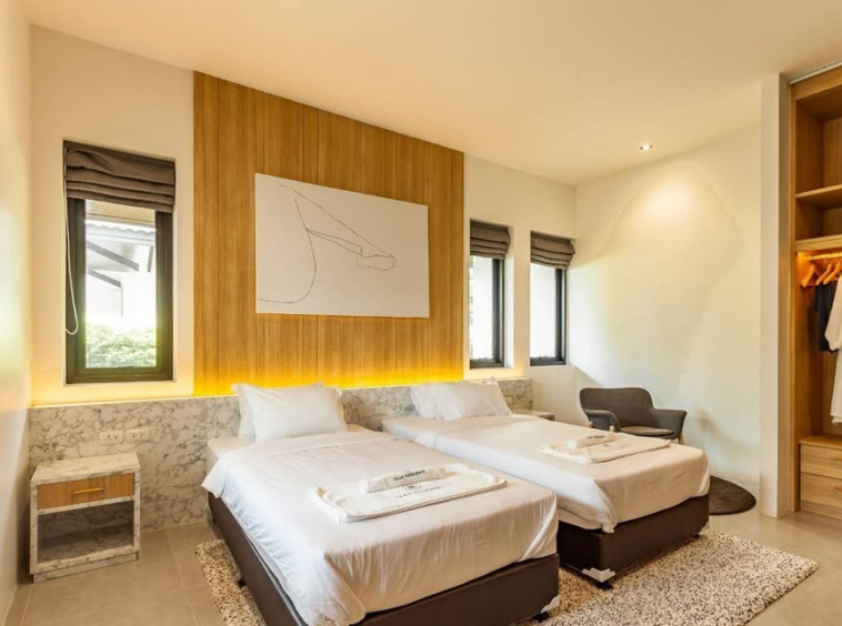 Private pool villa with 2 bedrooms for rent. This villa is located in Choeng Thale and less than 5 minutes from the beach.