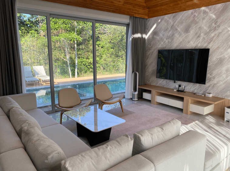 Step into a brand-new villa in Gloria, Manik, Phuket, designed for people who want space, privacy, and a clean, modern setup that simply works. This home blends smart living with a calm jungle-facing atmosphere, so you get the comfort of tech plus the feeling of being close to nature.