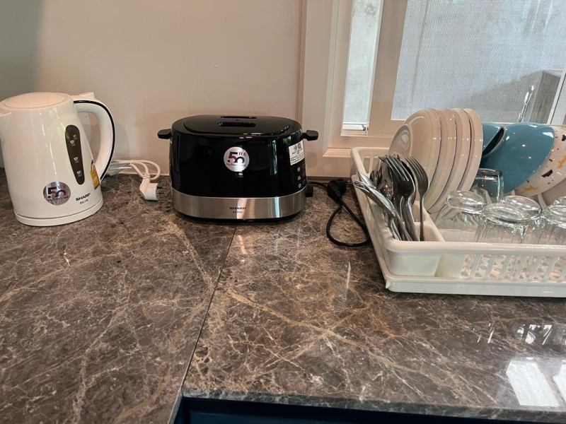 Fully equipped kitchen with electric stove
