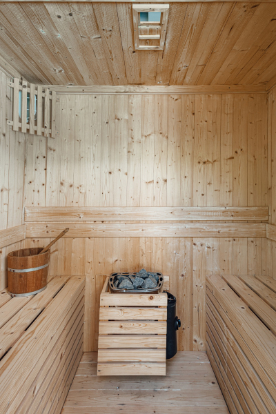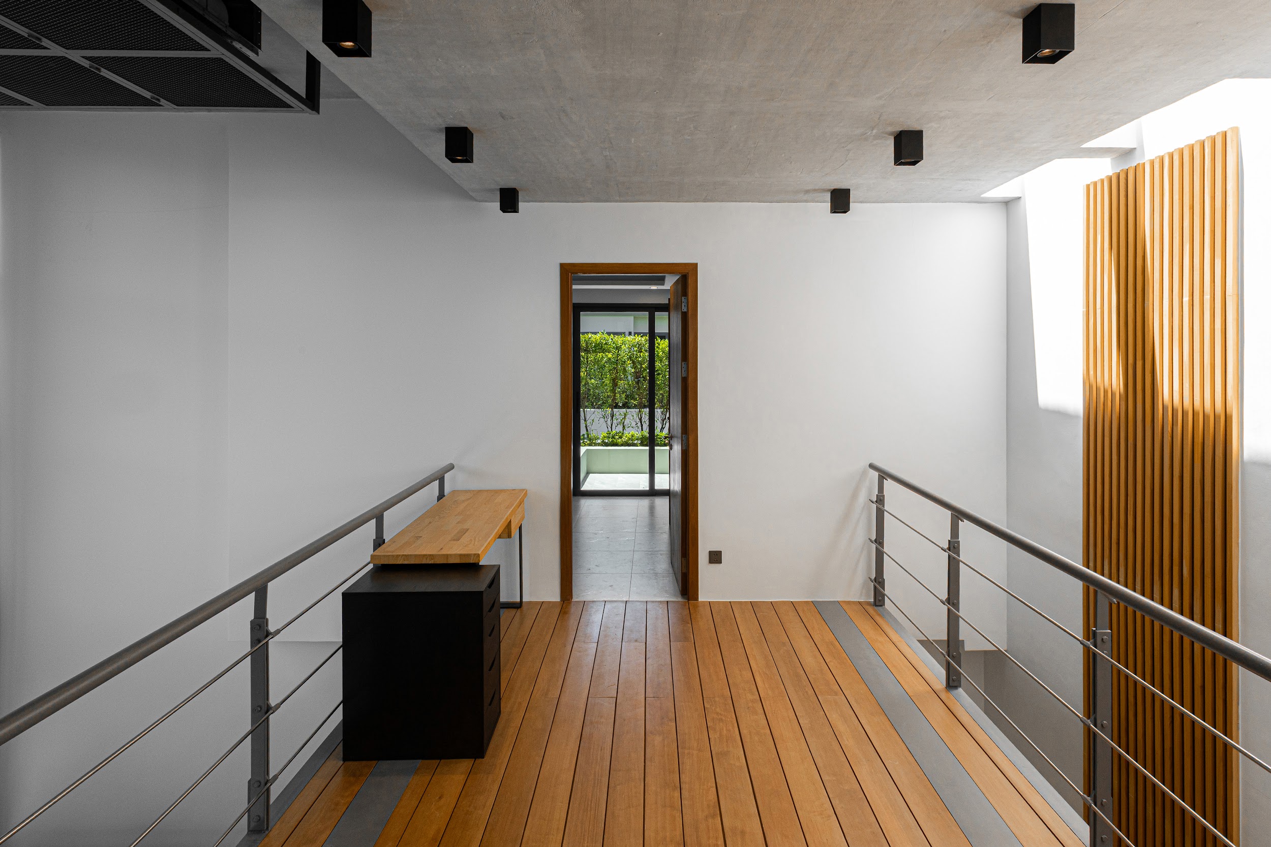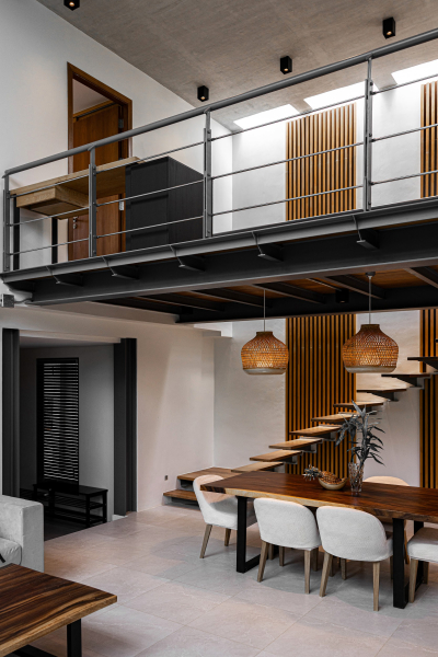 Spanning two bright and spacious levels, the villa features an open-plan loft-style layout filled with natural light and elegant finishes. The living area flows effortlessly onto a private terrace with a large saltwater swimming pool, ideal for entertaining or quiet relaxation. In the landscaped garden, a private sauna adds an exclusive touch of wellness and luxury to your everyday life.