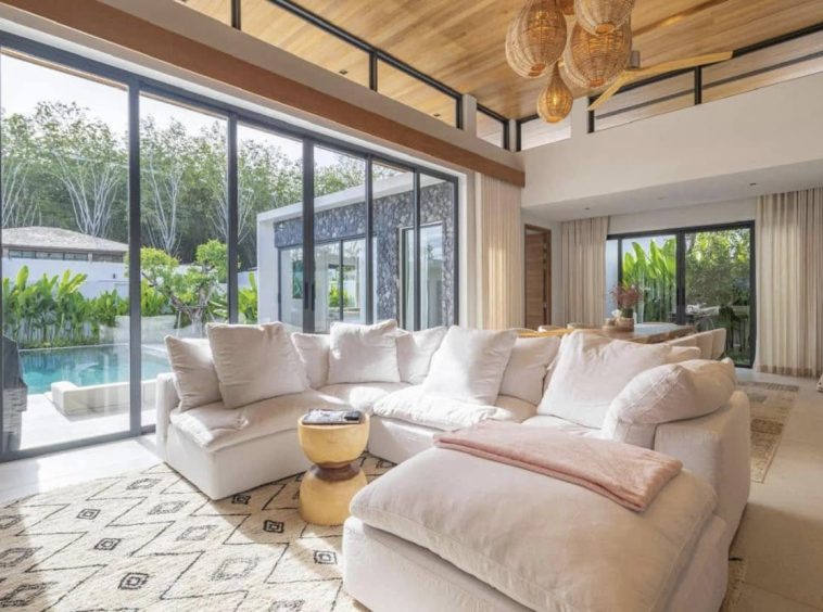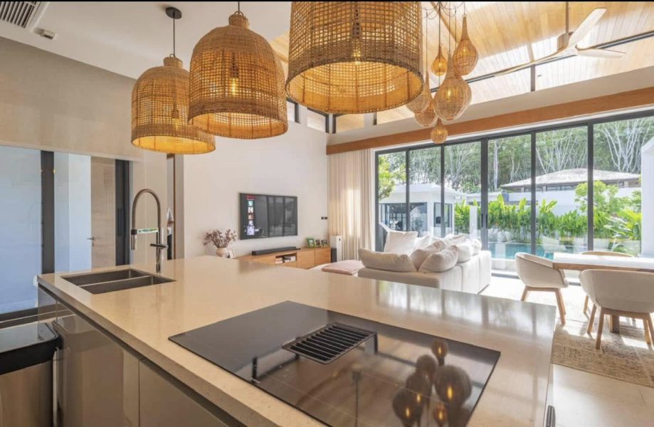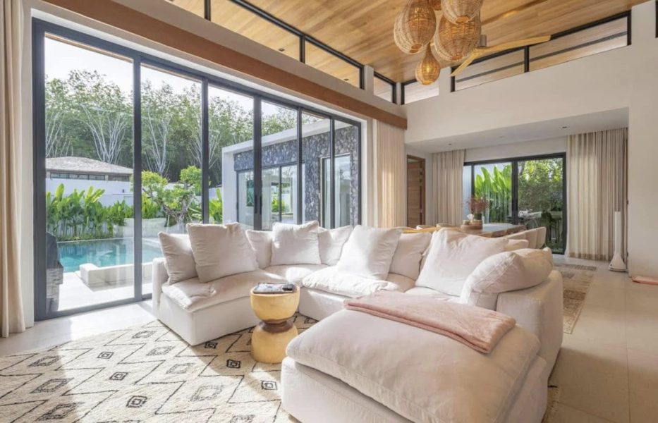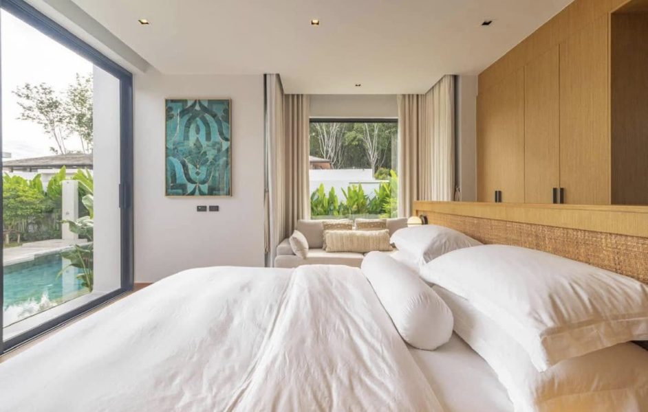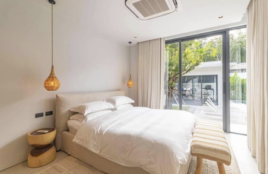 Private pool villa with 4 bedrooms for rent. This villa is located in Choeng Thale and less than 10 minutes from the beach.