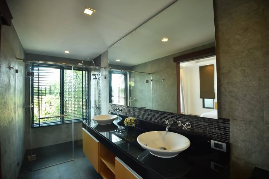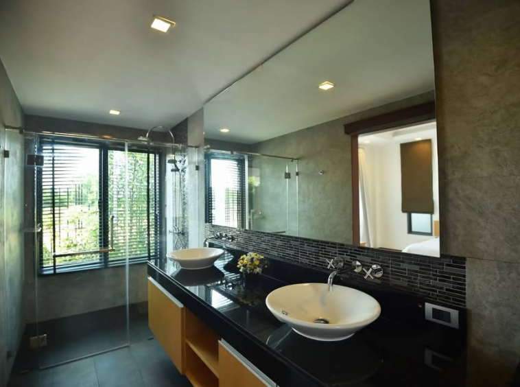 Each of the three spacious bedrooms features an ensuite bathroom, ensuring privacy and comfort. A guest restroom adds extra convenience. The villa is designed for effortless living, with high ceilings, sleek aesthetics, and quality materials enhancing its luxurious feel.