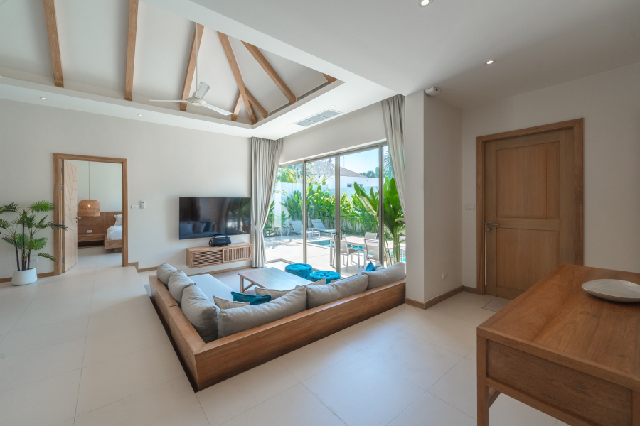 This Trichada Sky Villa for long-term rent in Pasak, Choeng Thale offers a comfortable and well-balanced lifestyle in a quiet residential area of Phuket. Designed for everyday living, the villa is ideal for families, couples, or professionals seeking space, privacy, and easy access to key amenities.